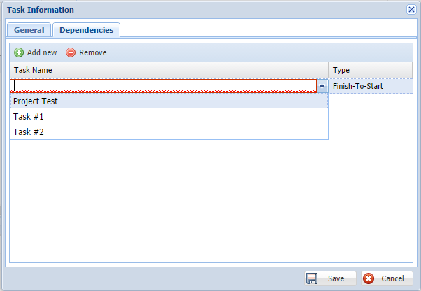 Select the Type of predecessor/dependency.