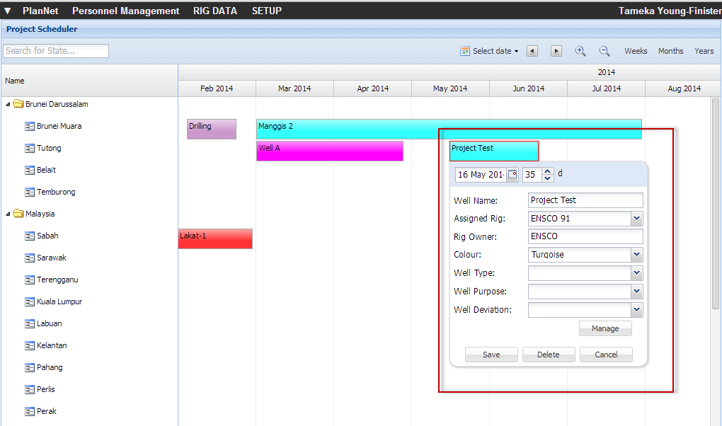 Navigate to the Planner to view the tasks and resources associated with the selected project.